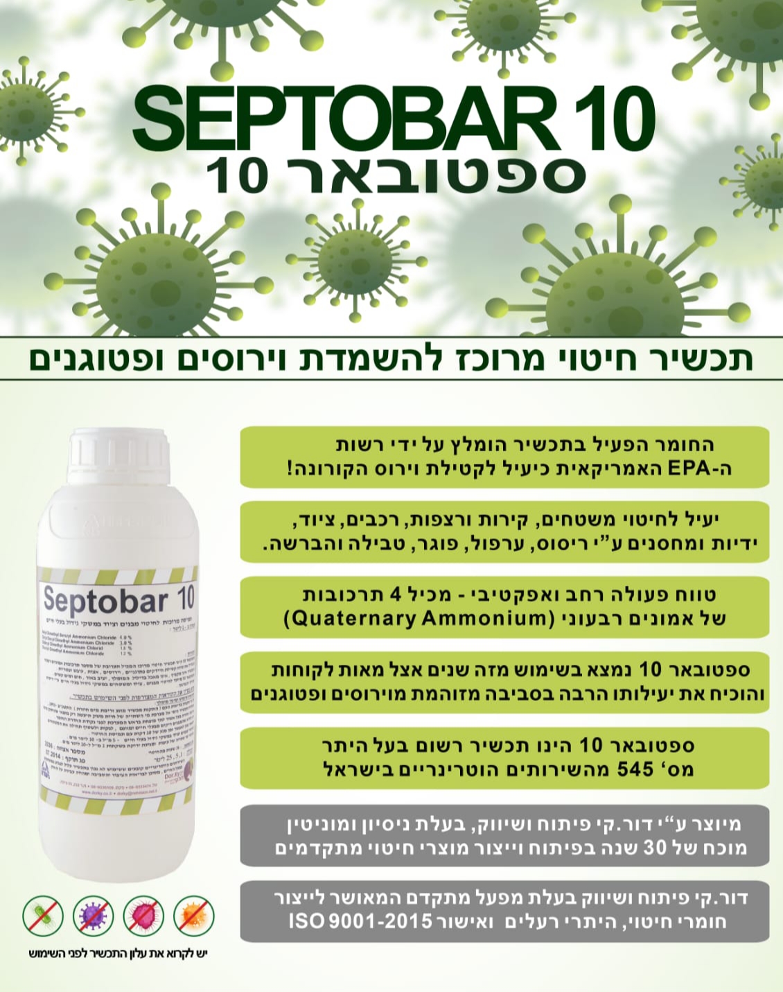 תכשיר חיטוי לקורונה וחיידקים אחרים(5 י'ח)