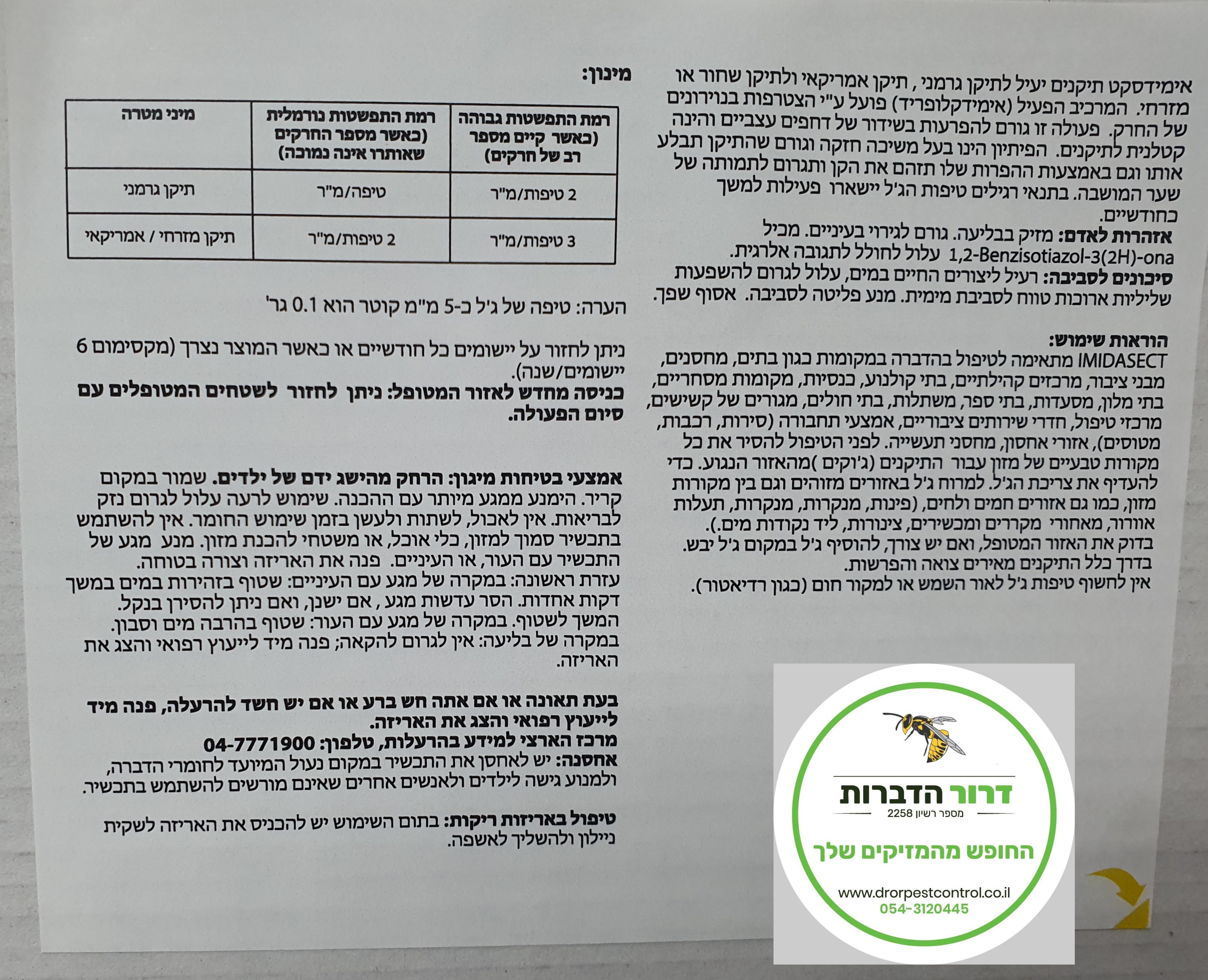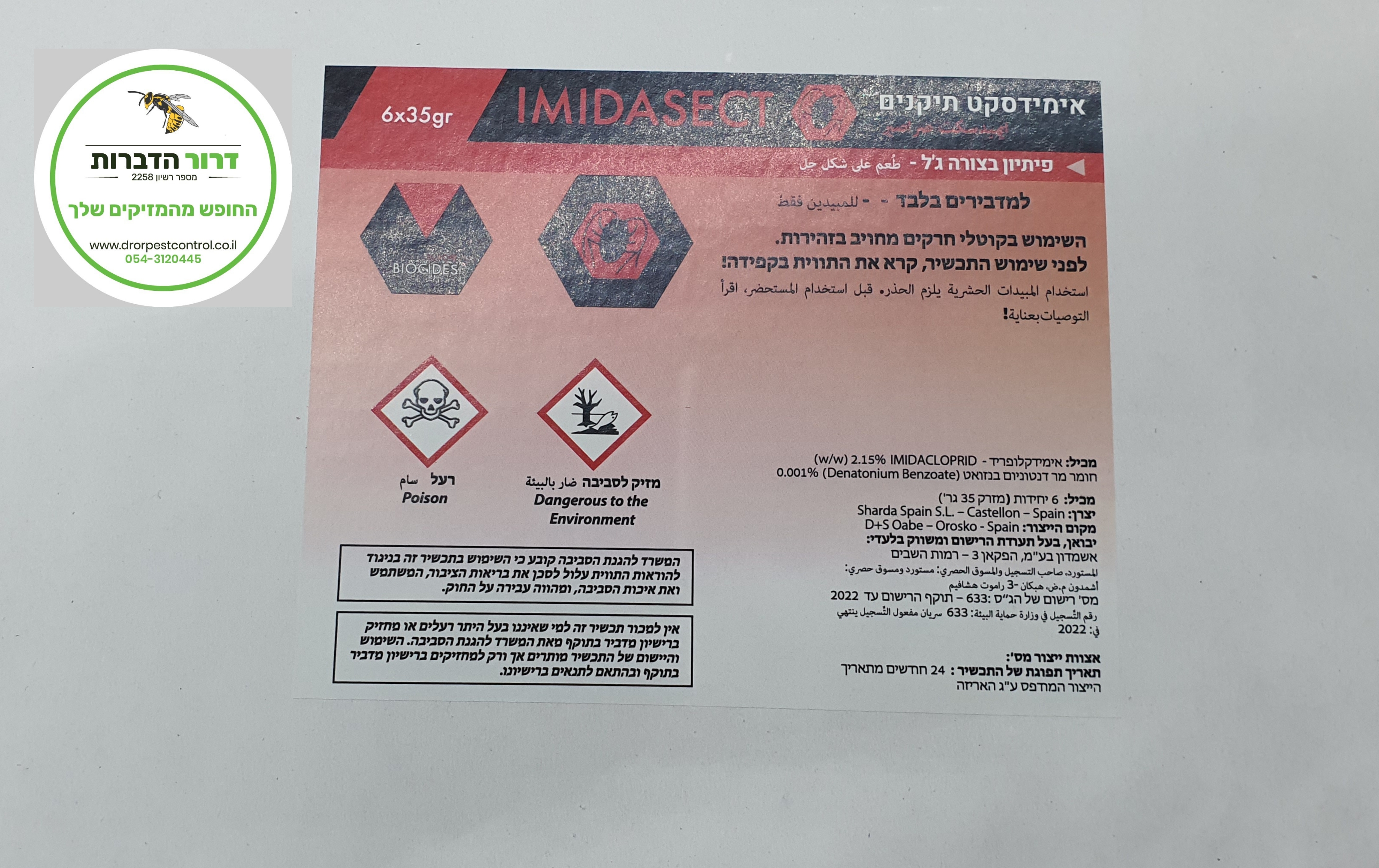 מארז 5 יחידות ג'לים אימידיסקט מקצועי להדברת תיקן גרמני, כל מזרק מכיל 35 גרם פתיון מורעל לכל סוגי התיקנים, גו'קים, תיקן גרמני,תיקן פסים חום, תיקן אמריקאי, תיקן מזרחי. קל לשימוש, לא מסוכן לבני אדם וחיות.