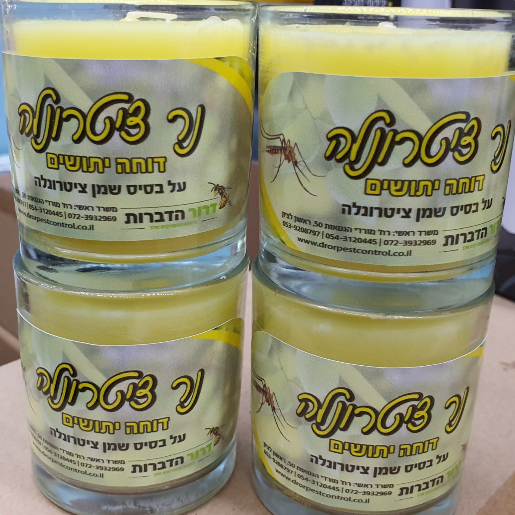 4 יחידות נר ציטרונלה דוחה יתושים, נר אוירה על בסיס שמן ציטרונלה ללא רעלים, מפיץ ריח מבושם, יעיל ודוחה יתושים, מתאים לבית ולחצר, מתאים לבתי עסק, לבתים פרטיים, משרדים, גינות ועוד, דולק עד 24 שעות.