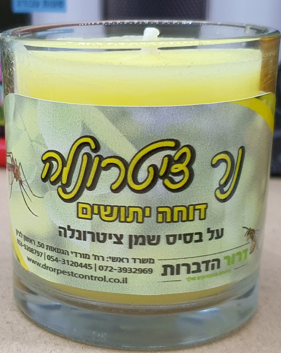 נר ציטרונלה דוחה יתושים על בסיס שמן ציטרונלה ללא רעלים( 4 י"ח)