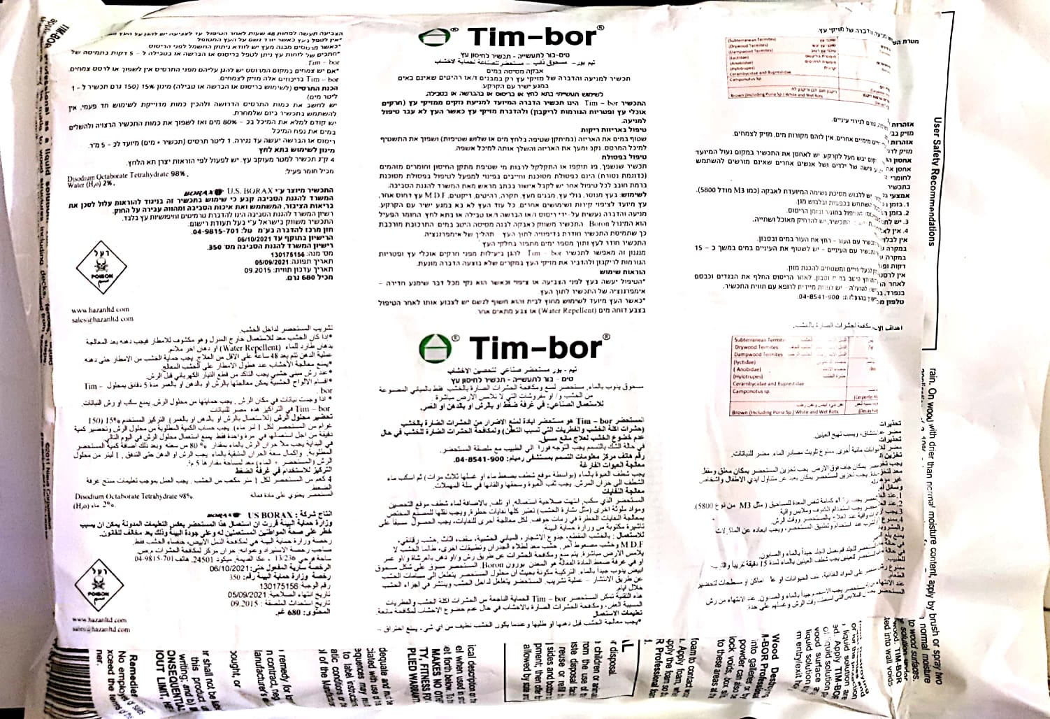 טים-בור תכשיר אבקתי מיועד להגנה על עץ כנגד חרקי מזיקי עץ טרמיטים,ליקטוס, יקרונית הרהיטים ועוד חיפושיות וחרקים אחרים. קל לשימוש, מחזיק להרבה זמן ובטיחותי לסביבה.